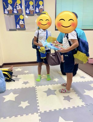プレゼントを渡す児童と貰う児童ともに照れ臭そうにしていますが、両者ともに楽しそうにしてくれているので、見ていると和みます🥰