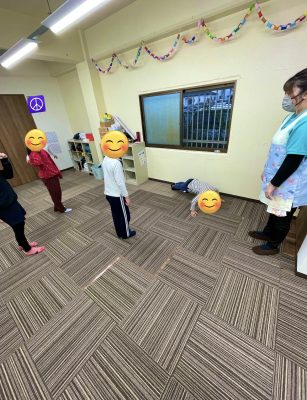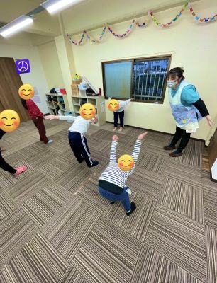 今回は前に立った児童が考えた同じポーズを取るをしたのですが、簡単な動きもあれば難しくてその児童しかできないやわらかい動きもあり、いつもとは違う賑やかなプログラムでした😊