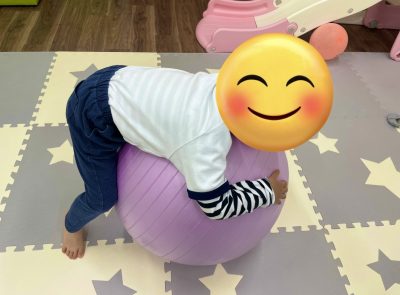 バランスボールに乗って脱力中(?)の1コマです(笑)