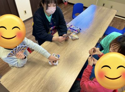自由遊びの時間には、「UNOしよ!」「いいよ~」というやり取りが飛び交っています(^^)