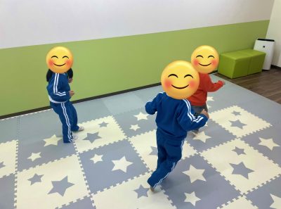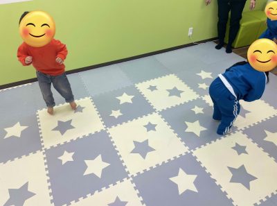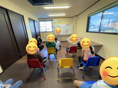 前に立ってジェスチャーをし、何をしてるか皆に答えてもらっています。