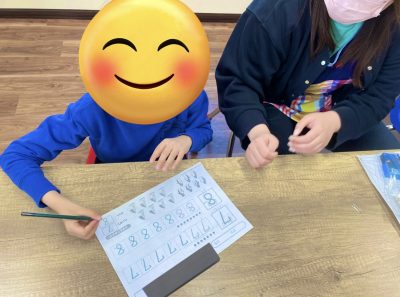 個別プログラム(スタッフと児童)1対1で課題に取り組んでいます。