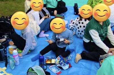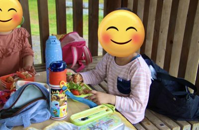 皆でタケノコを掘った後に近くの公園でお弁当を食べました。