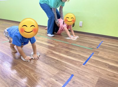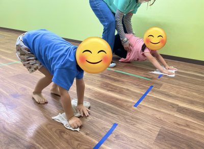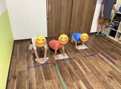 今日は皆で、ぞうきんレースをしました。