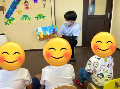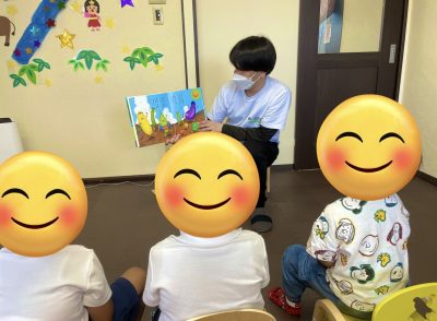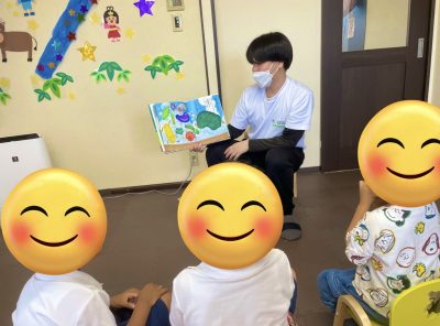 集団プログラムで「絵本の読み聞かせ」をしました。