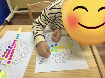 紙にシールを貼るのが好きなので、シールを枠内に貼ってもらっています。
