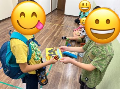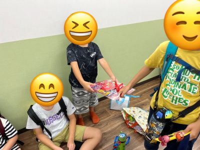 お祝いされた児童は照れ臭そうにしていますが、メッセージカードもらって喜んでいます😊