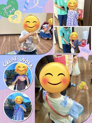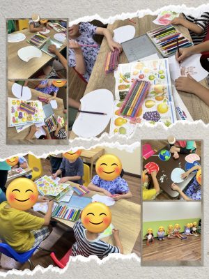 シールも大、小と2種類用意して好きなシールを貼ってもらい、ステキな作品ができています😍