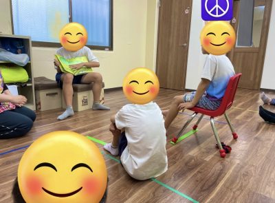 集団プログラムで「絵本の読み聞かせ」をしました。