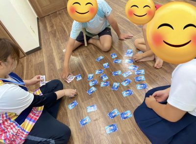 絵、数字、色など皆それぞれカードの覚え方が違うがカードの場所を覚えて揃えゲットしています😊