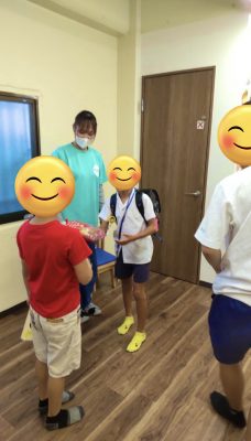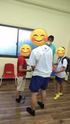 いつもはわんぱくな児童もプレゼントを貰うときは照れ臭そうにしています🥰
