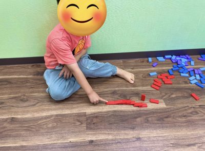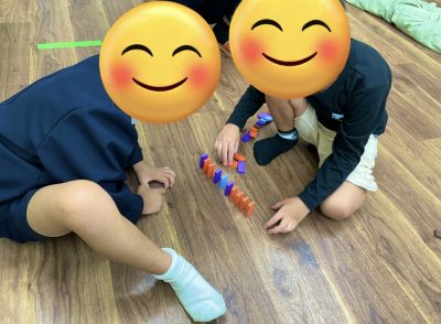 時間までに立て終わったら全員でドミノを倒して全て倒れ終わったら、やったーと嬉しい表情で喜んでいます🥰