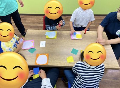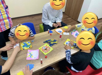 初めてののり付けに感触が嫌だったのか途中で嫌々になってしまいましたが、最後までやりきって完成させてくれました😊