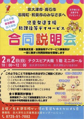 【合同説明会】 児童発達支援・放課後等デイサービス 泉大津市,和泉市,岸和田市,高石市,忠岡町