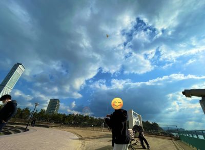 皆で凧あげをしに行きました。