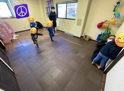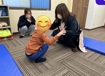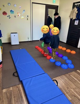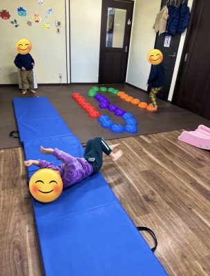 今回はバランスストーン、運動マット、滑り台を使って行い上手に頑張っていました。