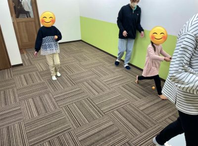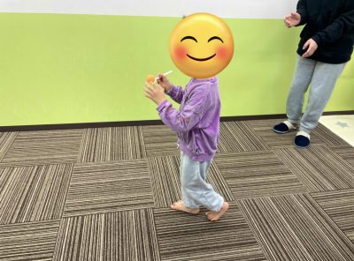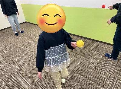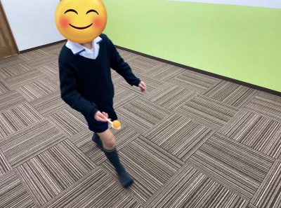 ルールはスプーンにボールを乗せて落ちない様に運ぶゲームなのですが、初めて行うプログラムなので、どうなるか分からなかったですが始まってみると皆上手にバランスを取って楽しく取り組んでくれています。