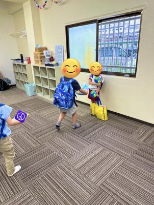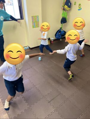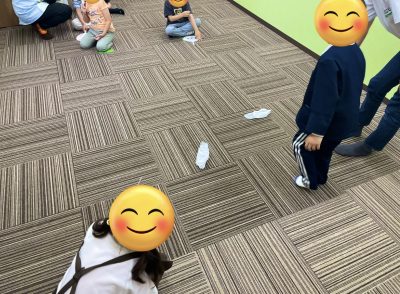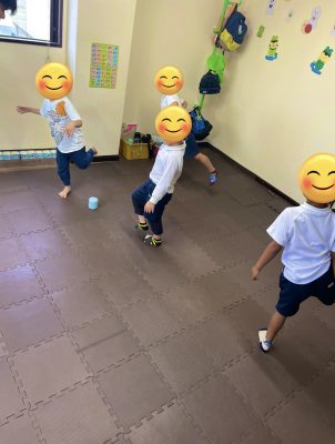 プログラムが始まる音楽が鳴るまでは遊んだりしていましたが、音楽が鳴り始めると玩具のおかたずけをしプログラムの音楽が始めるとビシッとして取り組んでいたので、何回も繰り返しているので、体に染みついてきたのかなと感じました。