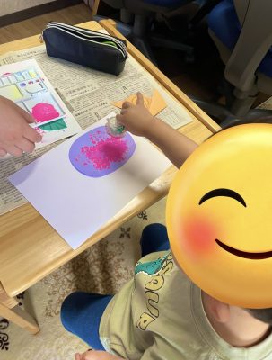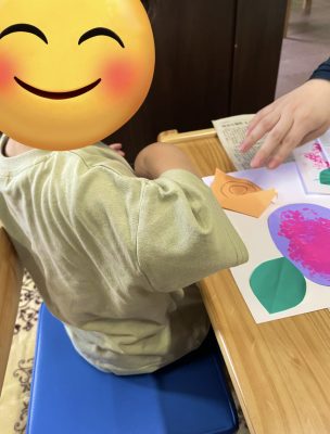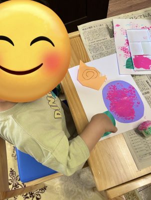 作っている最中には色を付けたり、糊で葉っぱを貼ったりとどんな作品が出来るのかなとワクワクしながら、楽しく制作に取り組んでくれています。