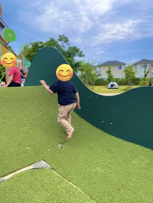 公園に着くと教室から持って来ていた(ストライダー)と(キックボード)に夢中で遊ぶので公園に来ているから公園の遊具は今しか遊べないよの一声で公園の遊具で遊び始めてくれました。