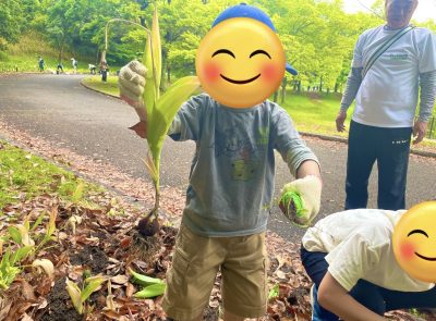 皆で地域で行っているチューリップの球根採取に行きました。