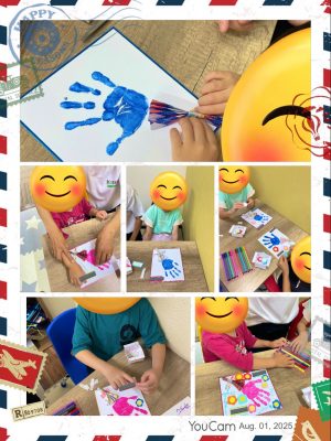 午前中はみんなで前回手形をとった色紙に飾り付けをして自分なりの作品を作りました😊