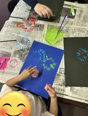 それぞれ色も違えば花火の形も違うのでオリジナルの作品が出来上がり、児童も楽しく取り組めています🥰
