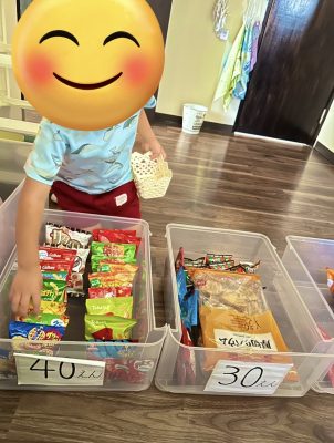 お菓子を選んでいる様子を見ていると、これは好きこれは嫌いなど、自分で考えながら選んでいるので、児童の計算力、思考力、決断力が色々と身に付くだけでなく、楽しくお菓子選びが出来ている所が良いなと感じます🥰