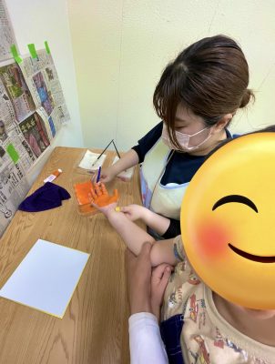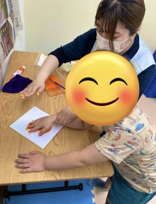 ブロッサムジュニア泉大津教室が開所して2年が経とうとしているので、児童の手形を取って思い出作りをしています。