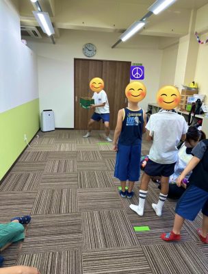 意外とセーフティゾーンに止まって何もしない児童が多く、面白みに欠けていましたが、その後は何かをしないといけないマスに止まる児童が続きゲームも盛り上がって楽しみました。