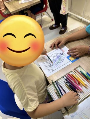 ぬり絵が好きな児童は見本通りに塗ったり、塗る色にとらわれない児童は自由奔放に塗って楽しんでいます。