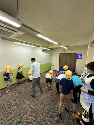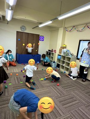 ルールは簡単だが線はを超えてボールを投げてはいけない、鬼はボールを外に出さないといけないと大変ですが、楽しそうにしてくれているので良かったです🥳