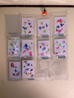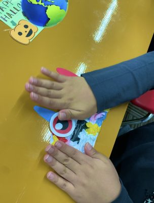 できた仮面でトリック・オア・トリート!と言ってお菓子を貰い、完成した仮面はお家に持って帰っています。