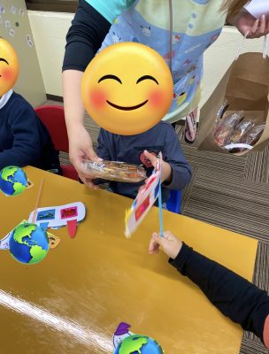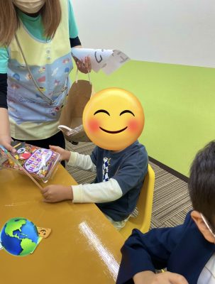 嬉しい表情のカードが出たので、プレゼントを貰えてうれしかった、給食でデザートがでて嬉しかった、お友達と遊べて嬉しかったなど、一言でも良いのでお話しをしてもらっています。