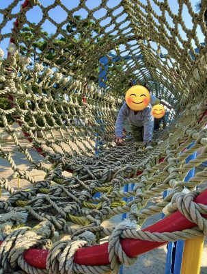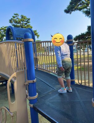 始めて行く公園なので、目新しい遊具を一個ずつ楽しんでくれています。