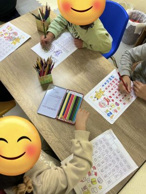 ぬり絵をしながらサンタさんはどこから来るのかな?プレゼントは何を貰おうかなと児童同士で楽しそうに会話をしながらぬり絵を楽しんでくれています🥳