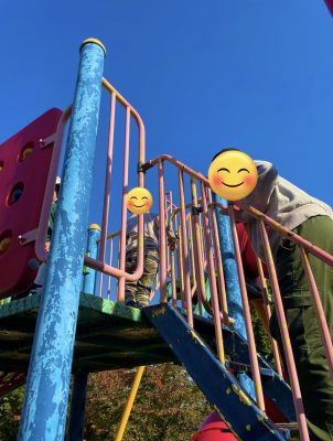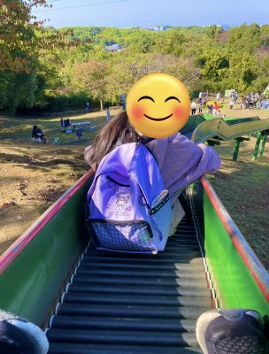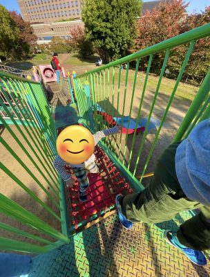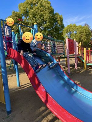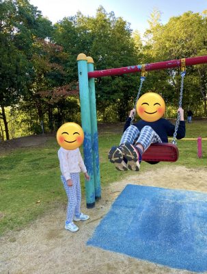 遊びたかったブランコ、滑り台があり満足そうに遊んでいます。