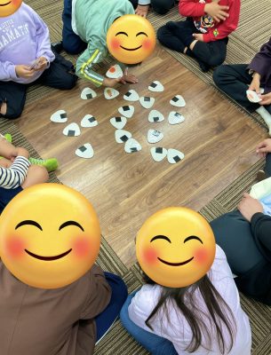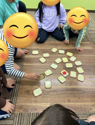 おにぎり、パンと二種類のカルタを使って児童には楽しみながら記憶力と目の運動を高めてもらう目的のためにスタッフが日々楽しんでもらえるプログラムを工夫して考えてくれています🥰