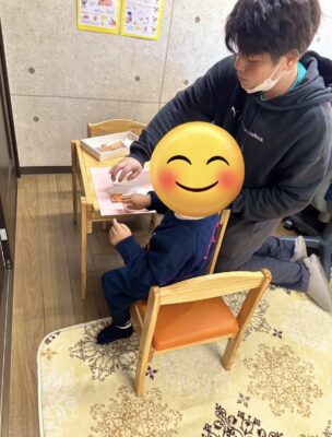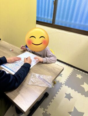 出来ない字(ひらがな)は一緒に書き方、書き順から一緒にマンツーマンで取り組んでいます。