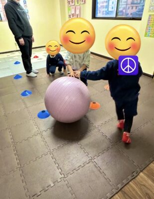 集団プログラム「ボール転がし」をしました。