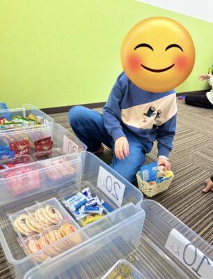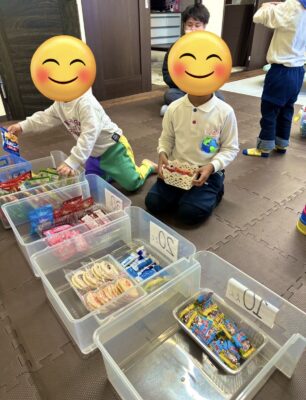 金額は100円分で自分で好きなお菓子を選び、計算出来る児童は自分で計算をして、出来ない児童はスタッフと一緒に計算をしました。